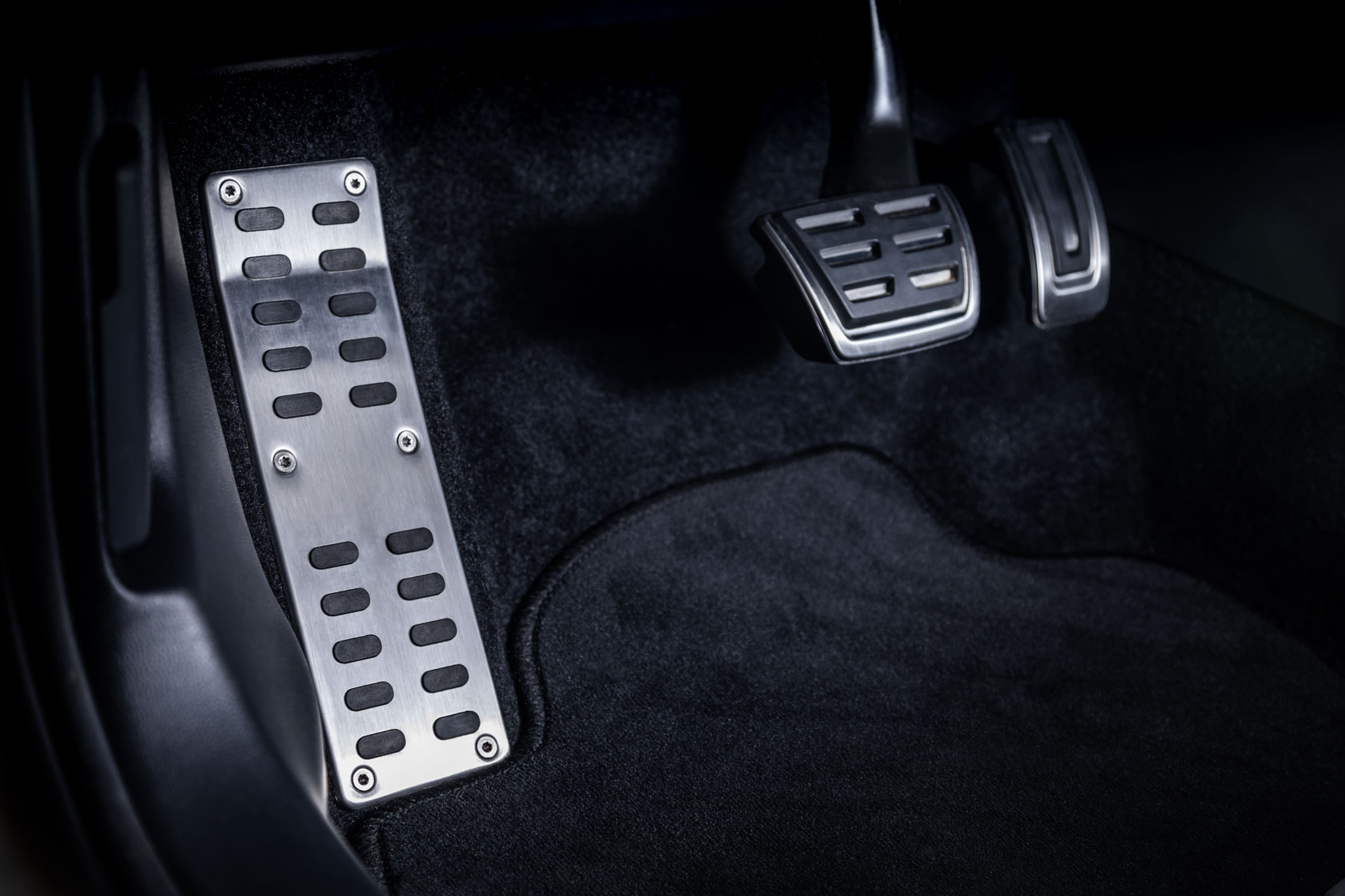 Die Fußstütze aus hochwertigem Edelstahl, verhindert starke Verschmutzungen am Fußraumteppich.