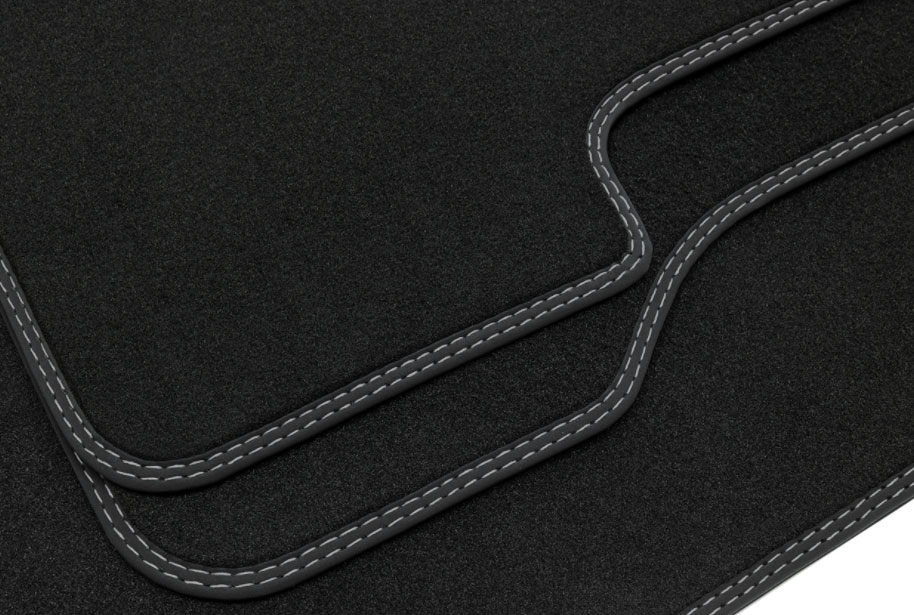Hochwertige Fußmatten mit Bandeinfassung und von Hand eingearbeiteter Doppelziernaht, sorgfältig ausgesuchten Materialien und einer Verarbeitung die Qualitätsmaßstäbe setzt.