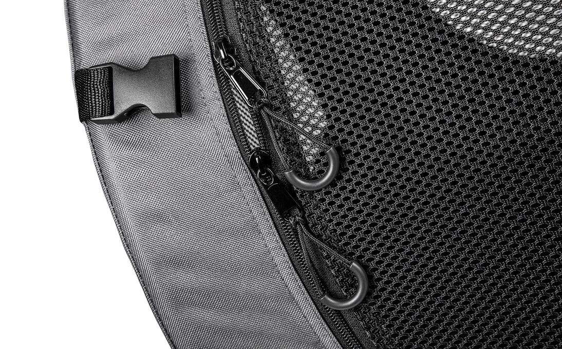 Sie besitzt eine Mesh-Belüftung auf vier Seiten, zwei Reißverschlussöffnungen und ist widerstandsfähig gegen Abrieb.